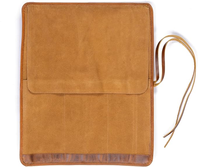 - PREMIUM MATERIAL: Elizo’s professional chef knife bag is crafted from full grain leather with saddle-stitched edges, thick suede flap for exceptional durability and a classic vintage appearance.