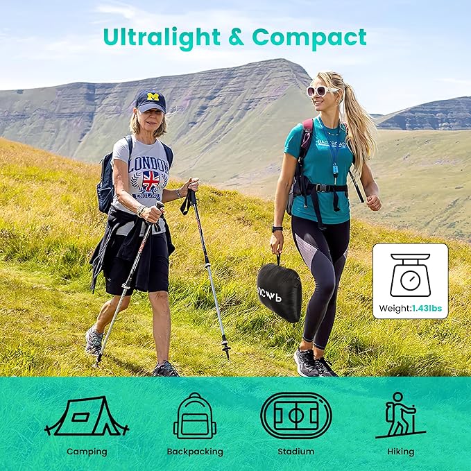 - Ultralight & Portable:: This adult wearable sleeping bag camping blanket is Ultralight (1.4 lbs) and compact (57.1"L × 45.3"W). It packs into its own storage pocket (11.8" × 9.8" × 5.9"), making it ideal for backpacking. It can also double as a pillow when not in use.