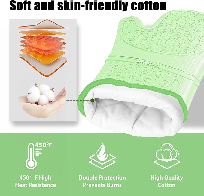 - 【Cleaning Champion】: If you always dread the greasy, sauce-soaked aftermath of baking. But these mitts? They just laugh in the face of culinary chaos. A quick wipe with a damp cloth or rinse with a little soapy water and any food just rinses right off. they're good as new, no stains, no lingering aromas. They're basically the dishwasher of the oven mitt world.
