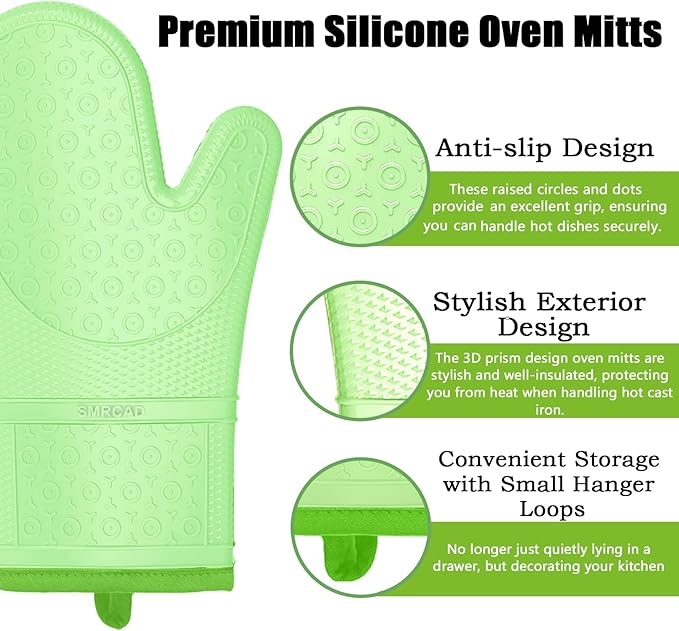 - 【Grippy Goodness】: Forget slippery mitts that send your pan careening towards the counter top! These silicone boast a textured surface that grabs onto anything and everything, hot or cold. Whether you're pulling a Dutch oven out of the oven or flipping juicy burgers on the grill, you know your grip is secure.