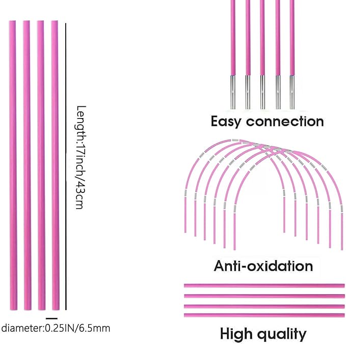 - PRODUCT CONFIGURATION: You will get 36 fiberglass poles, 30 connecting tubes . DIY gardening grow tunnels, small greenhouses, mini grow tents, different sizes of gardening arches, can meet your various needs. Our fiberglass plant poles are 6.5 mm in diameter, thicker than normal plant poles, made of durable, environmentally friendly high quality fiberglass, flexible, green and healthy, never rust, antioxidant, can be used for a long time. It can be easily disassembled