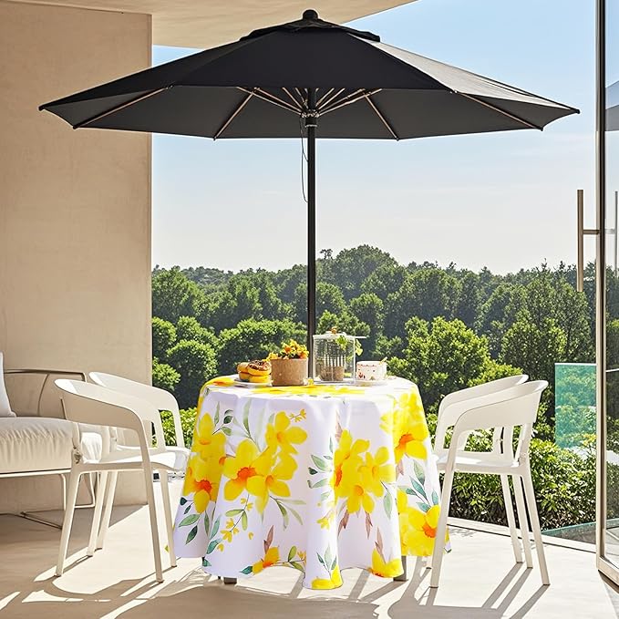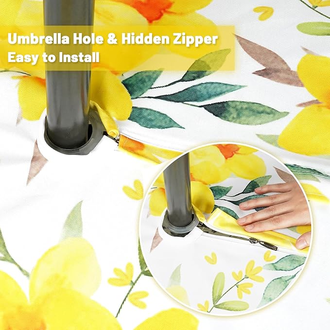 - UMBRELLA HOLE DESIGN: Enjoy a high quality tablecloth that features a 2.5" center hole zipper for easy installation around umbrellas and a 1" hem. Very easy to install and perfect for spring and summer table decoration.