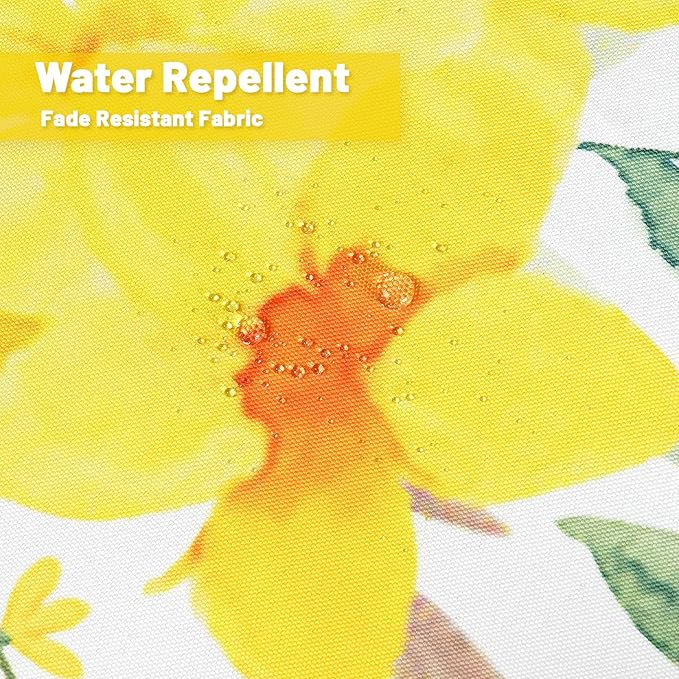 SquarePie Round Outdoor Talecloth, 60'' Waterproof Spill Proof Patio Table Cloth Cover with Umbrella Hole and Zipper for Spring Summer Party Picnic,Yellow Flower