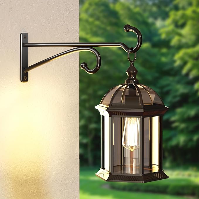10" Plant Hanger Hook Outdoor Indoor ??Planter Hooks for Hanging Plants, Plant Wall Hooks, Brackets for Hanging Plants, Baskets, Wind Chimes, Bird Feeders, Lanterns, Bird Houses (Black, Metal, 2-Pack)