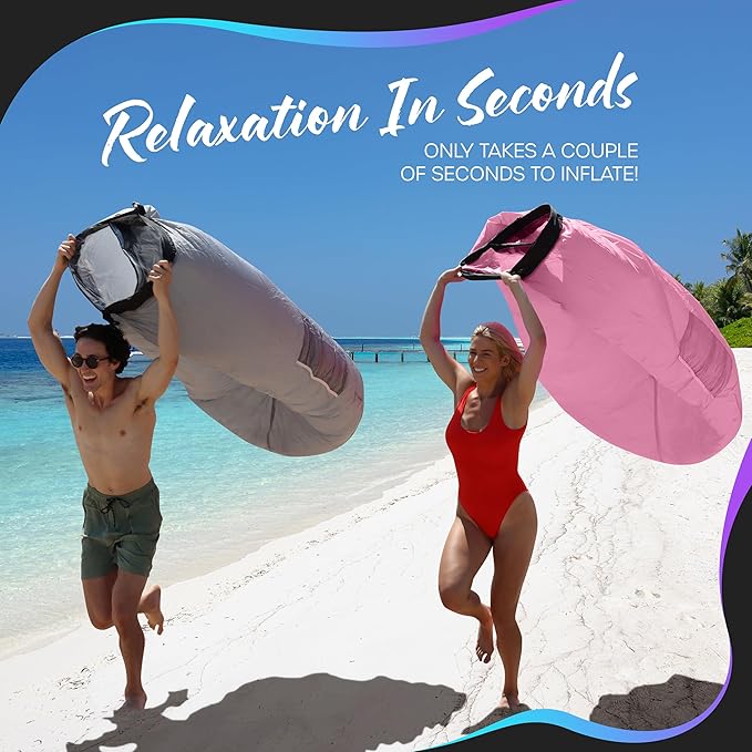 - Wind Optional Set Up: Setting up the Nevlers Bubblegum Pink Inflatable Sofa is as easy as 1-2-3! Simply run a few feet, roll it up, then clip it to have your inflatable furniture ready in no time. No wind? No worries! Even if there's no breeze, you can use a fan or air pump to inflate this air chair . When it's time to pack up, deflate & fold the portable beach chair into the drawstring bag for lightweight storage. No need to lug around bulky seating with our inflatable lounge chair .
