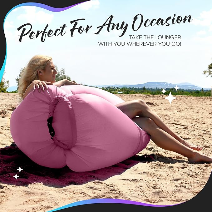 - Air Lounger Bed Chair For On-The-Go: With our air sofa , pack light & relax anytime, anywhere! Use our inflatable couch for camping , comfort at the beach or under the stars, a backyard barbecue, relaxing by the pool, an outdoor adventure, a pet bed, & much more. From music festivals to firework shows & picnics in the park, you'll have an adaptable inflatable chair for kids & adults alike. Take convenience with you wherever you go with the Nevlers Bubblegum Pink Air Chair Inflatable !