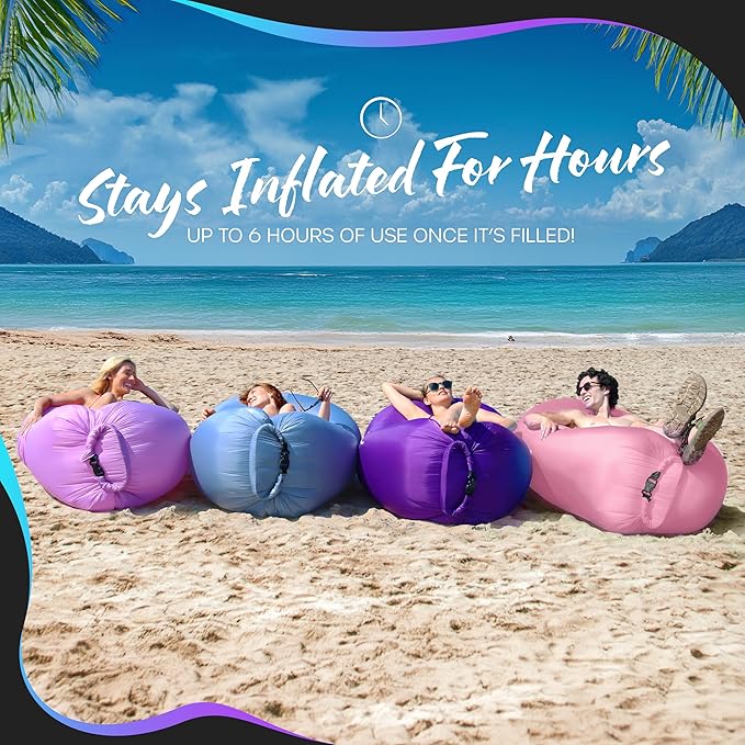 - All-Purpose Blow Up Sofa : Share fun & laughter with friends & family as you set up this hammock camping chair , & watch the compliments roll in once they're full of air & ready to go. Use it for everything from an inflatable beach lounger to a convenient camping couch . Whether you're searching for the perfect gift for outdoor enthusiasts, a versatile addition to your picnic accessories , or extra seating at home for movie night, the lightweight outdoor lounger design excels in any setting.