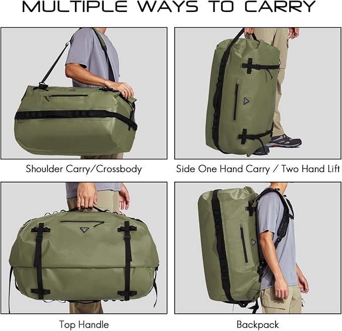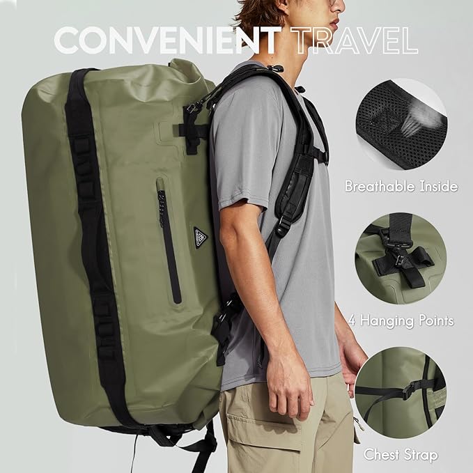 Haimont Large Waterproof Duffel Backpack Roll-Top Heavy Duty Dry Duffle Bag for Boating, Travel, Motorcycle, Kayaking, Camping, 60L