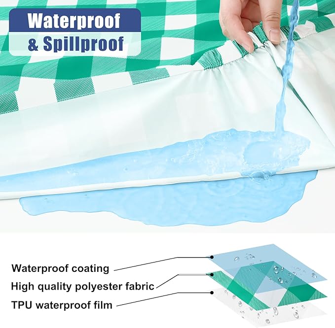 - [Waterproof & Washable] Our tablecloths feature a double-sided waterproof design, with a spill-proof surface and an additional inner TPU layer that causes spills to bead up instead of soaking in. Cleaning is hassle-free, machine washable in cold water, and looks like new.