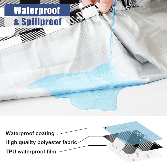 - [Waterproof & Washable] Our tablecloths feature a double-sided waterproof design, with a spill-proof surface and an additional inner TPU layer that causes spills to bead up instead of soaking in. Cleaning is hassle-free, machine washable in cold water, and looks like new.