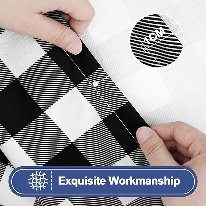Smiry Picnic Table Cover with Bench Covers, Waterproof Elastic Fitted Tablecloths for 8 Foot Rectangle Tables, Washable Buffalo Plaid Tablecloth for Camping, Outdoor (Black & White, 30"x96")