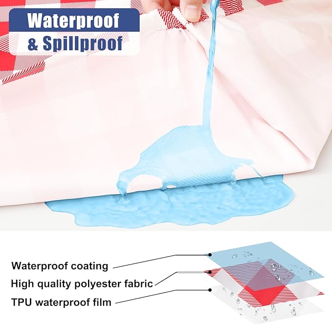 - [Waterproof & Washable] Our tablecloths feature a double-sided waterproof design, with a spill-proof surface and an additional inner TPU layer that causes spills to bead up instead of soaking in. Cleaning is hassle-free, machine washable in cold water, and looks like new.