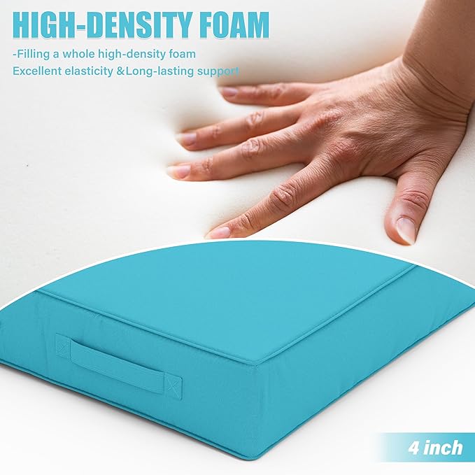 Patio Chair Cushions 19 X 19 X 4 Inch Waterproof Outdoor Seat Cushions for Patio Furniture, Outdoor Sofa Couch Pads with Ties & Handle, Set of 2, Lake Blue