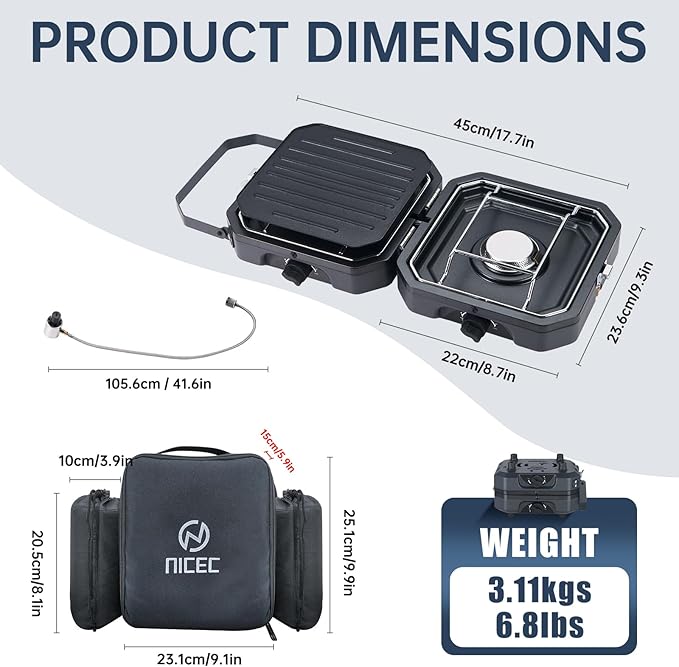 - Compact Design: Measuring 9.3 x 8.7 x 5.8 inches and weighing just 6.8 lbs, this Portable Camping Stove features a foldable design with an integrated handle, making it easy to carry and perfect for convenient outdoor camping experiences.