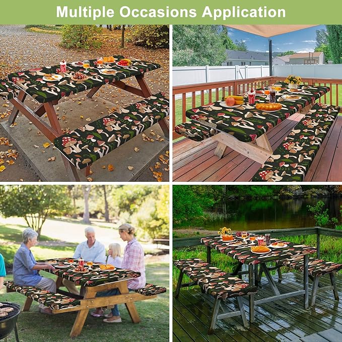 - 【EASY INSTALL & WINDPROOF】Both table cover and bench cover designed with all around elastic, not only can prevent unexpected movements and stay firm in windy conditions, but also easy to install and uninstall by yourself, so your happy picnic time won't be disturbed.