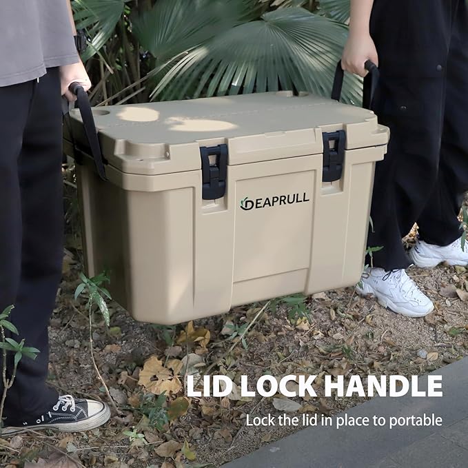 - Double Lock, Tactical Standard: The hard cooler has a 2-latches design, double locking the cold air. Tactical cooler is of military-grade toughness, withstands a 1.5m drop test and holds up to 500 lbs. Offers resistance to ice, freezing rain, exposure, humidity, and salt spray to ensure long-lasting performance