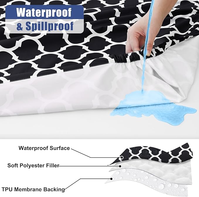 - [Waterproof & Easy Clean]Our picnic table cover featuring a waterproof surface and a TPU-backed design which delivering exceptional protection from leaks, stains, and wear. Whether you're using the cover for outdoor picnics or indoor gatherings, you can easily toss it into the washing machine for a quick refresh after every use.