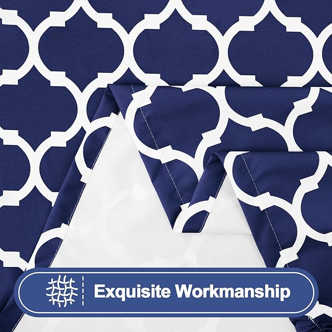 Smiry Picnic Table Cover with Bench Covers, Waterproof Elastic Fitted Tablecloth for 8 Foot Tables, Washable Polyester Tablecloths for Camping, Indoor & Outdoor (Navy Morocco, 30x96 Inch 3-pc Set)