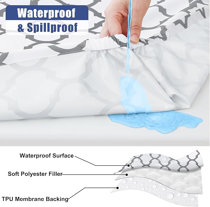 - [Waterproof & Easy Clean]Our picnic table cover featuring a waterproof surface and a TPU-backed design which delivering exceptional protection from leaks, stains, and wear. Whether you're using the cover for outdoor picnics or indoor gatherings, you can easily toss it into the washing machine for a quick refresh after every use.