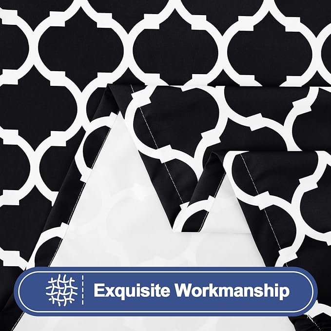 Smiry Picnic Table Cover with Bench Covers, Waterproof Elastic Fitted Tablecloth for 8 Foot Tables, Washable Polyester Tablecloths for Camping, Indoor & Outdoor (Black Morocco, 30x96 Inch 3-pc Set)