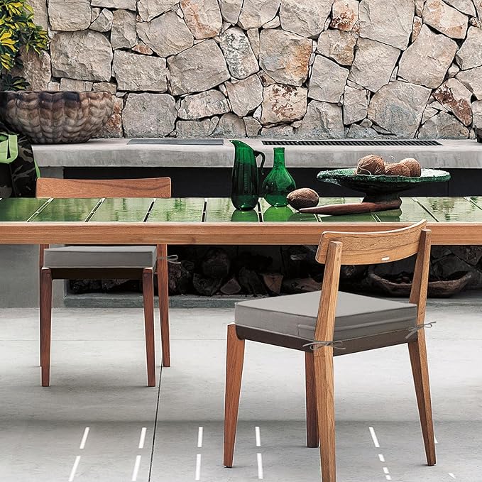 Sunbrella Square Corner Seat Cushions, 19" x 19" x 3", Set of 4, Indoor Outdoor Water Repellent Universal Chair Pads with Ties for Patio Furniture, Garden Dining Chairs, Specrtum Pebble