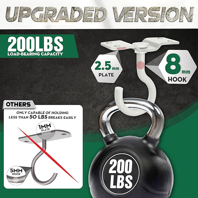 - [200 LBS Load-Bearing Capacity] Our ceiling hooks for hanging plants have a base with four firmly drilled holes and durable construction, which boasts an impressive loading capacity compared to others on the market. With the ability to carry a high load-bearing weight of up to 200 lbs, this hanging plant hook outdoor ensures it delivers dependable performance for many years.