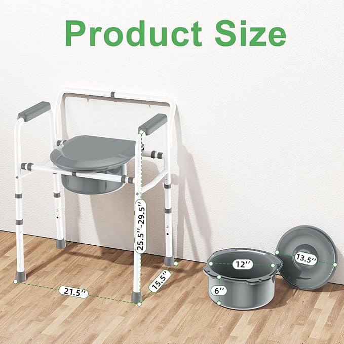 - Upgraded Bedside Commode: Wide seat, raised toilet seat, comfortable arm rests, non-slip feet, and adjustable height from 26.7-32.6 inches. Suitable as commode chair heavy