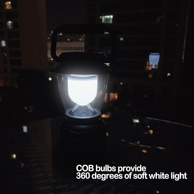 - ๐ก120 LM COB LEDs surround you with uniform 360ยฐ illumination up to 120 lumens, lighting 10-15 mยฒ in power cuts or wild camps. Flicker-free, eye-safe beam keeps reading, cooking or repairs clear and comfortable.