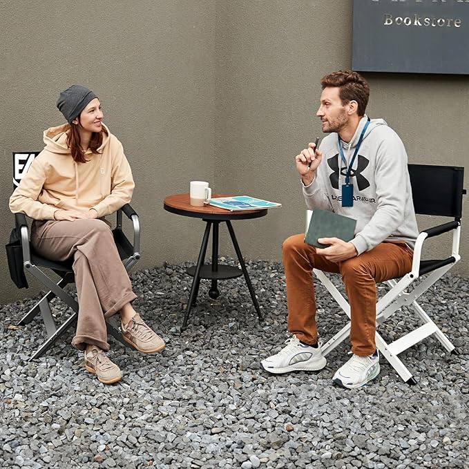EVER ADVANCED Aluminum Directors Chair, Folding Studio Movie Chairs Camping Event Vendor Chair, 19" Seat Height Black Fabric/White Frame, Support 350lbs