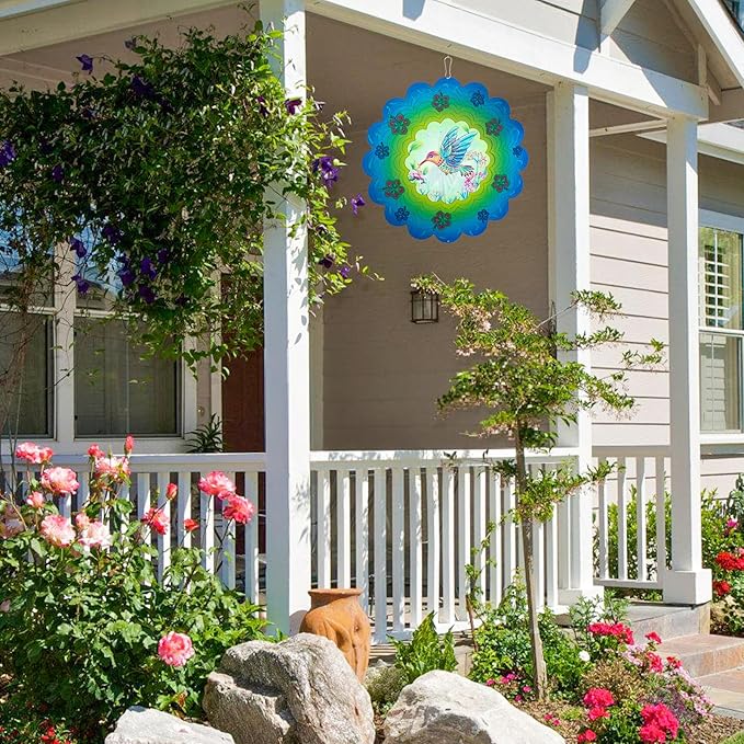 - 【3D Animations Hummingbird Spinner Decor】The magical Hummingbird style inspires the decorative hanging wind spinner, With a beautiful 3D dynamic pattern of the Hummingbird creates a magical 3D animation visual effect through different angles on the surface. The unique design make it seems more visual. Suitable decorate your garden and patio.