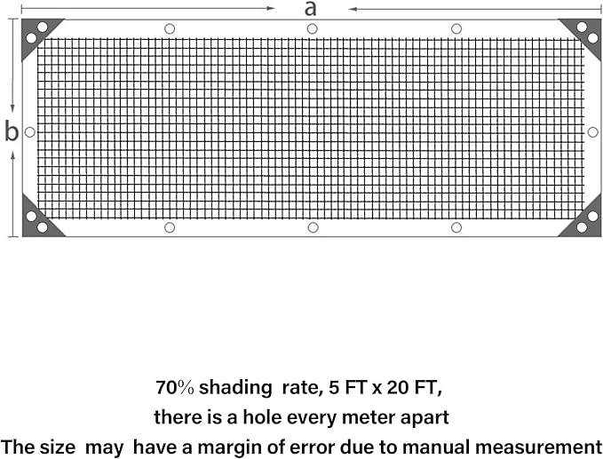 - 70% Sunshade with Breathable Design: With its 70% shading rate, this mesh tarp effectively reduces sunlight exposure while allowing airflow. It creates a cooler, more comfortable environment, preventing plants from wilting and providing a relaxing space for patio or outdoor activities.