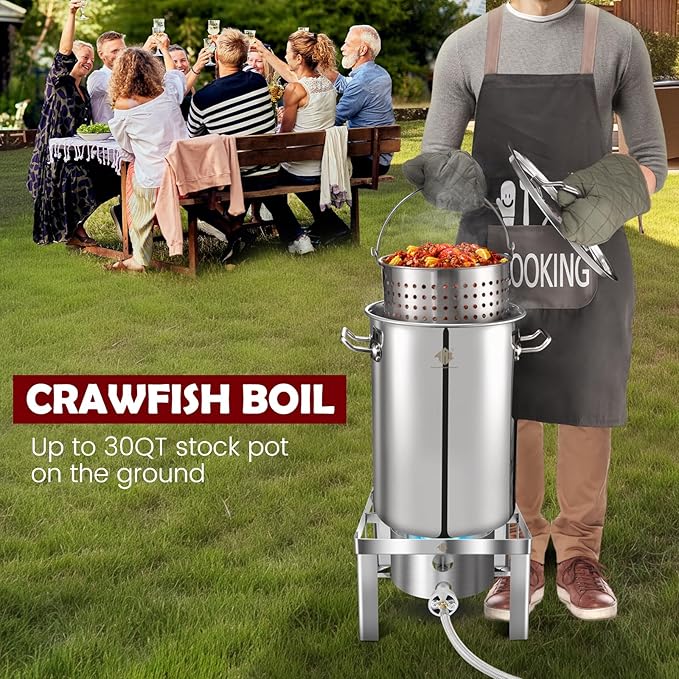 - Heavy-Duty Stainless Steel Construction—This Propane Stove crafted from premium stainless steel is heavy-duty for all your large batch cooking needs, from crawfish boiling,homebrewing to turkey frying to perfection.