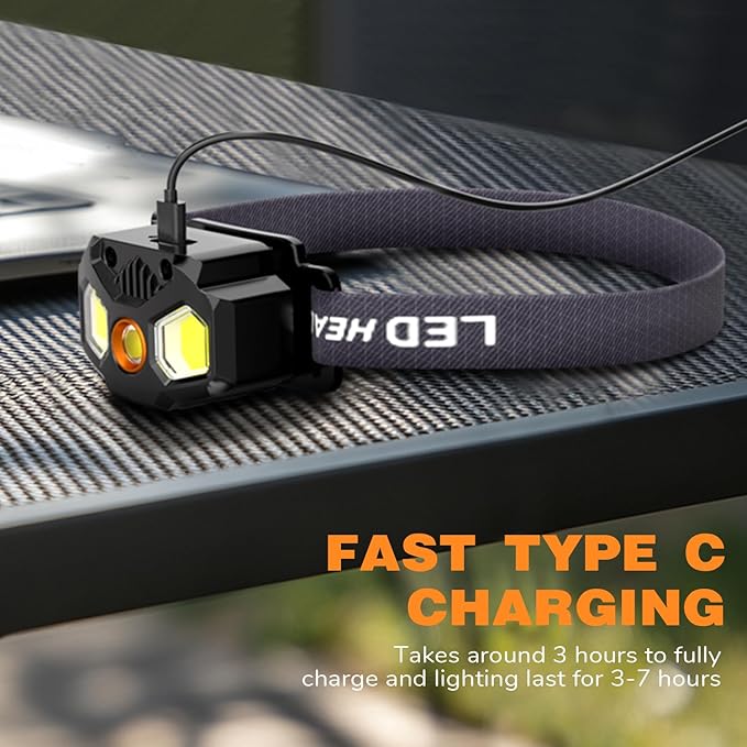 - 【Fast Type-C Rechargeable】The green headlamp features an upgraded Type-C fast charge chips that only takes around 3 hours to fully charge. It has built-in powerful rechargeable battery, which can be able to charge and turn on the lights at the same time. No need to wait for full charge or replace the battery, and lighting last for 3-8 hours(depend on the mode you choose)after fully charged
