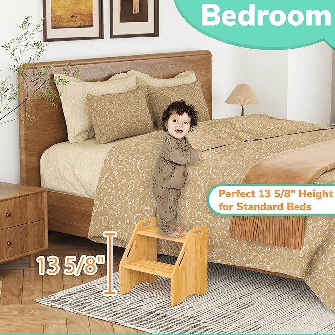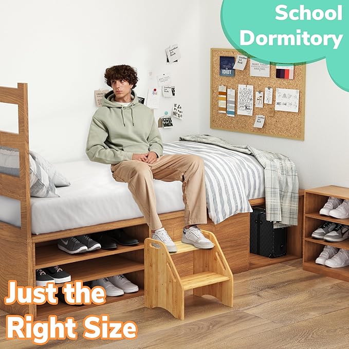 - IDEAL 13.6'' HEIGHT FOR HIGH BEDS: With an overall height of 15.75'' and a top step height of 13.6'', this stool is tailored for both adults and children facing challenges while entering or exiting the bed. It suits standard beds, high beds, lofty mattresses, and dorm beds, providing effortless access for adults and kids, thereby boosting convenience and safety. Moreover, it serves as a valuable addition to your closet