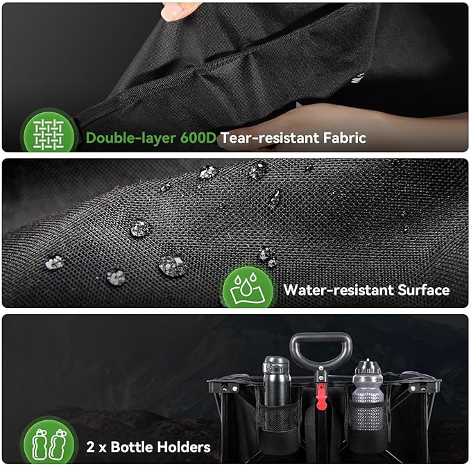 - CONQUER ANY TERRAIN WITH EASE: Equipped with widened all-terrain wheels and front-wheel brakes, this collapsible cart makes traversing various surfaces a simple task. From rocky paths to sandy beaches, and even inclined slopes, enjoy smooth, safe travels every time. Ideal for gardening, sporting events, and beach trips, it lets you control wherever your journey takes you.