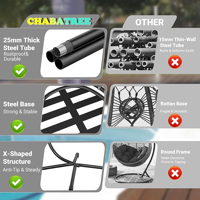 - 【Easy to Assemble】:This patio egg chair comes with all necessary hardware and detailed instructions, making assembly simple and safe. Additionally, the waterproof cushion cover is easy to clean and removable.
