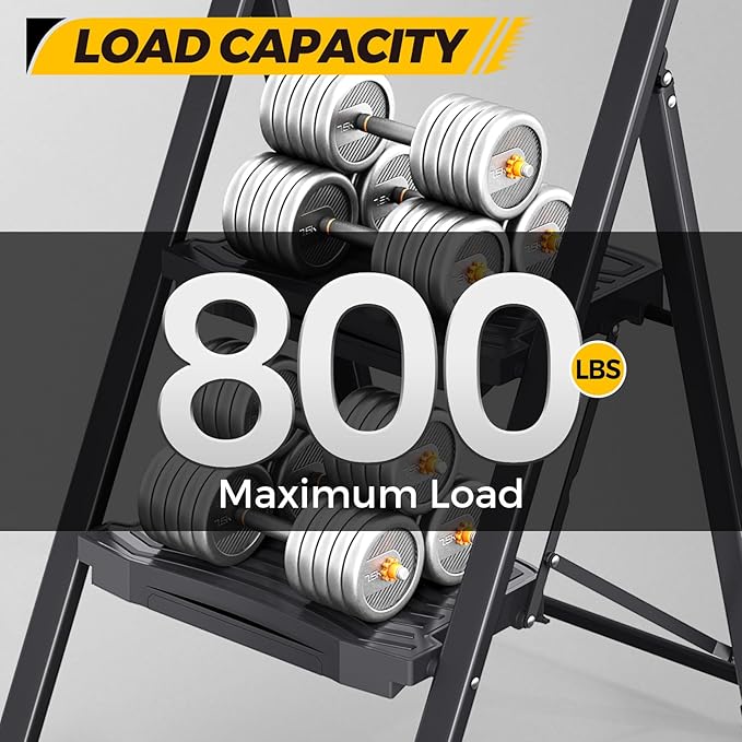 - 800lb Heavy-Duty Security: The step ladder won't wobble or buckle when you're changing bulbs or reaching top shelves. Perfect for heavier tasks like carrying paint cans up to attic storage.