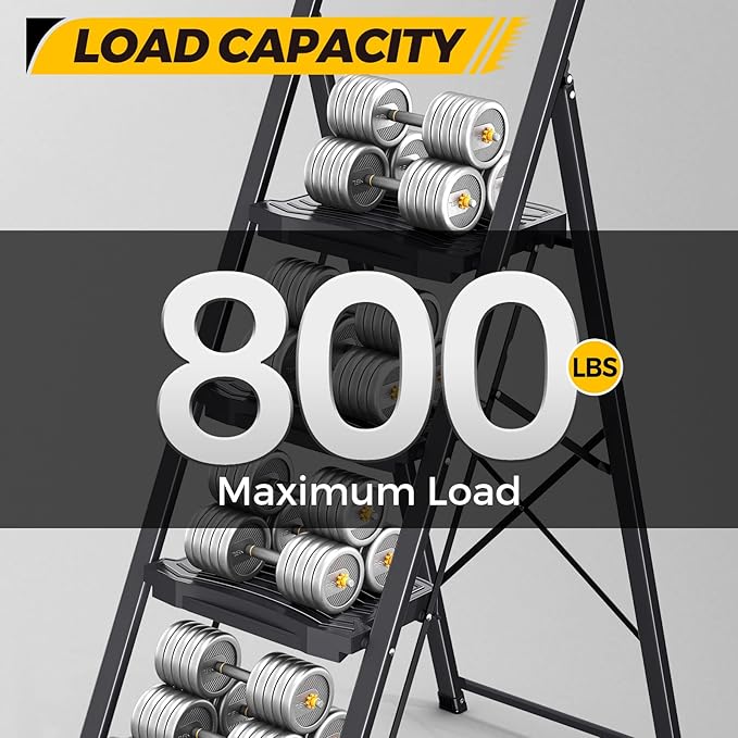 - 800lb Heavy-Duty Security: The step ladder won't wobble or buckle when you're changing bulbs or reaching top shelves. Perfect for heavier tasks like carrying paint cans up to attic storage.