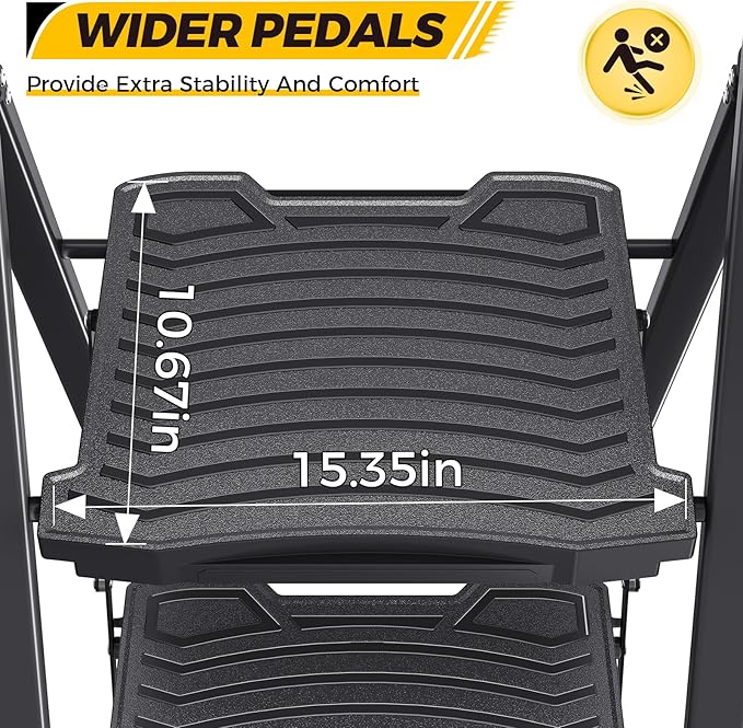 - No-Slip Confidence with Every Step: The ladder features 15-inch wide pedals to keep your feet secure, even in socks. Non-scratch rubber feet grip tile and wood floors, ensuring safe, worry-free climbs when cleaning gutters or hanging curtains.