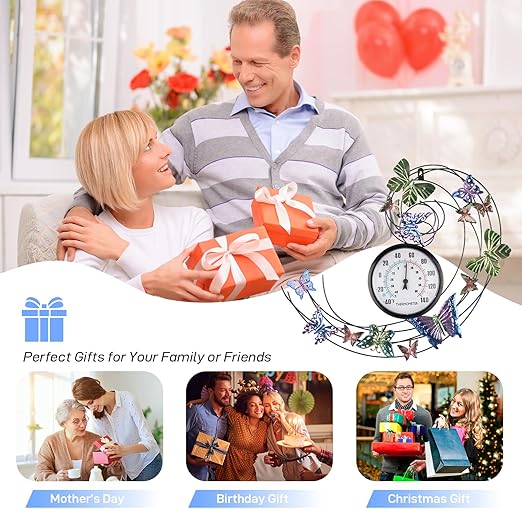 - Exquisite Design: The combination of the 7.8-inch outdoor thermometer and the large-sized butterfly metal wall hanging is a stunning design, a display of artistic pursuit. Hanging it in the living room or patio can not only detect the temperature but also be appreciated as wall art