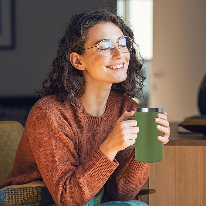 DOMICARE 24oz Mug with Handle and Lid, Stainless Steel Coffee Mug, Reusable Insulated Cup, Travel Mug with Handle, Double Wall Vacuum Coffee Tumbler for Men and Women, Army Green, Pack 1