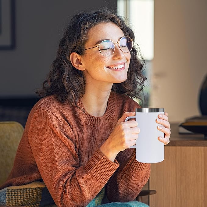 - 24oz Insulated Coffee Mug with Handle: This insulated 24oz mug with handle is made of high quality stainless steel, double-wall vacuum insulation, keeps your drinks at the perfect temperature for hours, whether it's piping hot or refreshingly cold.