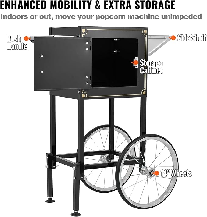VEVOR Popcorn Maker with Cart, 850W Popcorn Popper Machine, 8 Oz Kettle Makes 48 Cups per Batch, Popcorn Maker Equipped with Tempered Glass, Includes 4 Scoops, Movie Theater Style, Black