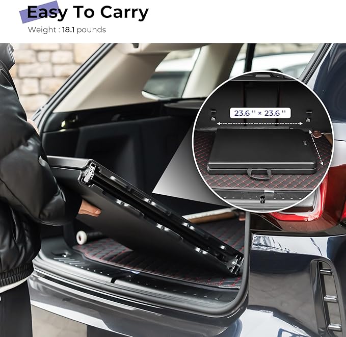 - PRACTICAL AND LIGHTWEIGHT: The folding table weights 18 pounds, the unfolded size is 48" L x 24" W x 29.5" H; the folded size is 24" L x 24" W x 2.8" H. It requires no assembly and sets up or folds away in minutes, comfortably seating 4-6 adults