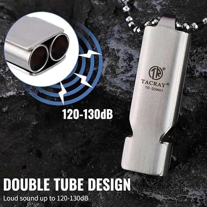 - -Super loud survival whistle: Double-tube designed emergency whistle can provide up to 120 decibels, enough to be heard from long distance. Good parnter for camping, hiking, hunting, fishing, boating any kind of outdoor activities.