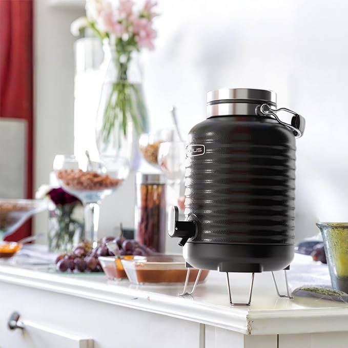 - Unique Exterior - All-in-one Designed by professional designers, these beverage dispensers have a unique and elegant appearance which combined wild and modern elements. The powder coating on the surface has very strong scratch resistance. Double-wall stainless steel vacuum insulation allows for maximum temperature retention.