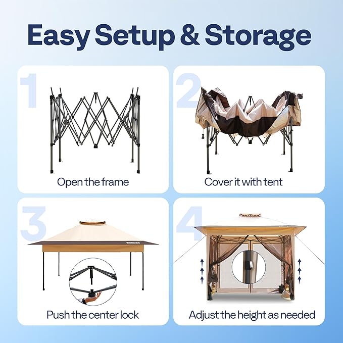 - VERSATILE USE FOR OUTDOOR: Ideal for a wide range of outdoor activities, including picnics, camping, backyard BBQs, parties, and market stalls; The water-resistant and sun-resistant fabric provides reliable protection from rain and harmful UV rays; Perfect for any occasion, creating a cozy, shaded, and welcoming outdoor environment for family and friends