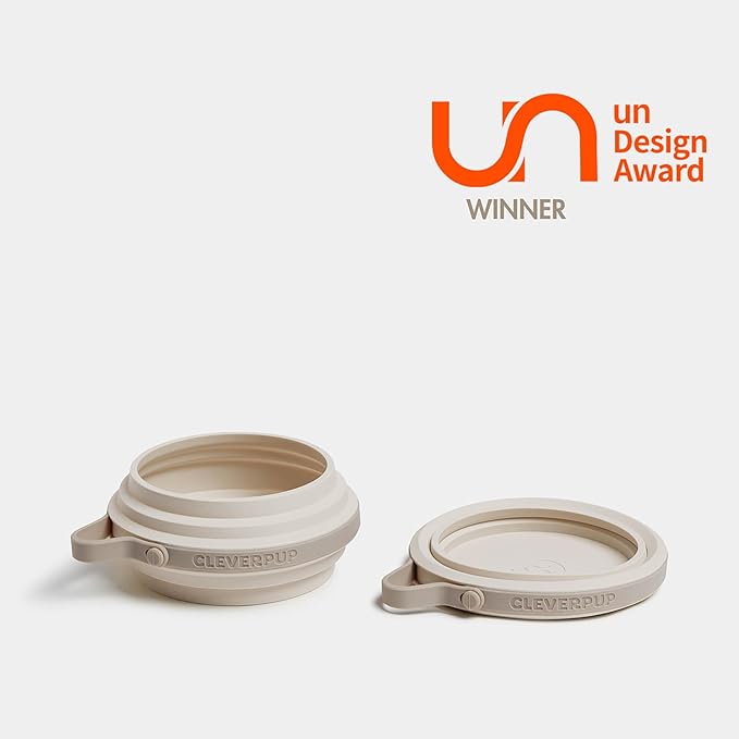 - CLEVER AWARD WINNING DESIGN - The unique splash guard rim helps prevent spills, while the built-in hook with snap allows easy attachment to a leash or bag for quick access during walks or adventures. Award Winning Design (un Design Award, 2025).