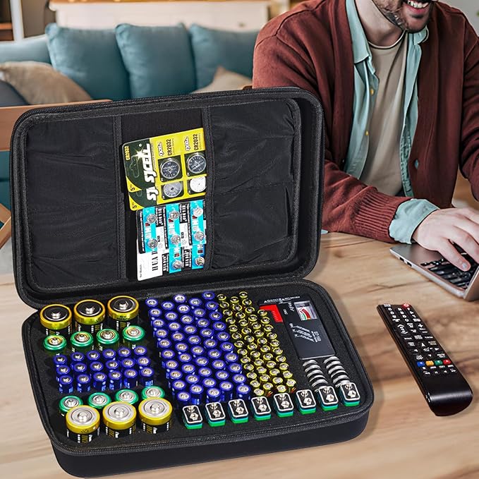 - CAPACITY: Holds 148+ Batteries,It can hold 66*AA, 48*AAA, 8*C, 6*D, 8*9V, 12*Button type batteries. Case Come with 1 Battery Tester BT-168,Check the battery level.