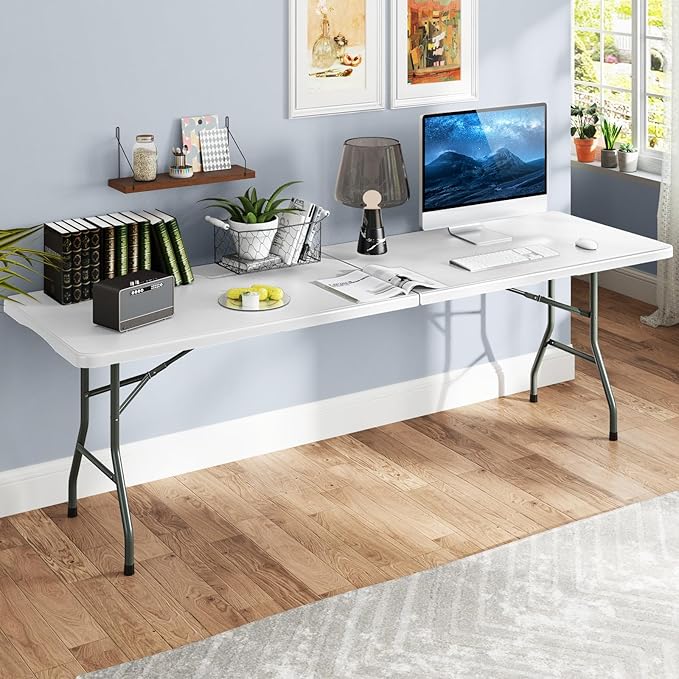 - Secure Folding & Expanding: Equipped with a safety lock and joint locks, the table folds in half with high security for easy storage and transport. This portable folding table with 36.5 lbs net weight will provide much convenience for you.